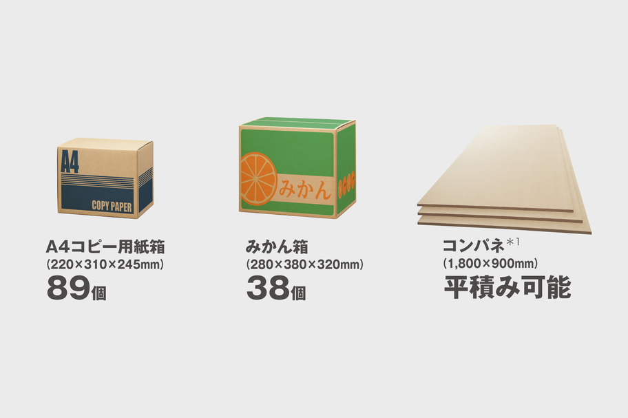 *1.シートバック一体可倒クッション引き起こし式リヤシートの場合、シートクッション取り外し時のみ積載可能です。■積載物の個数は2名乗車時です。また積載可能数量は、表記サイズの箱を使用。最大積載量については考慮していません。