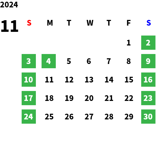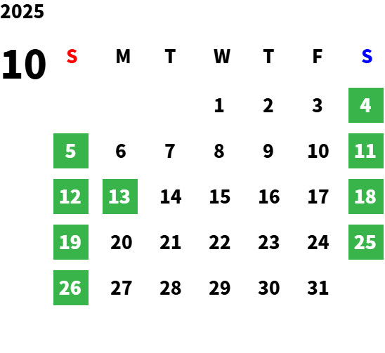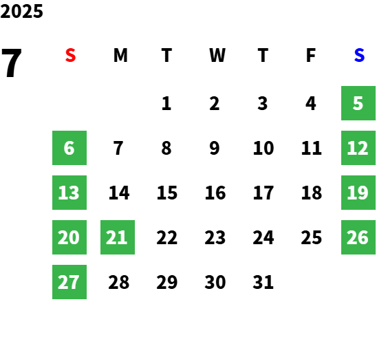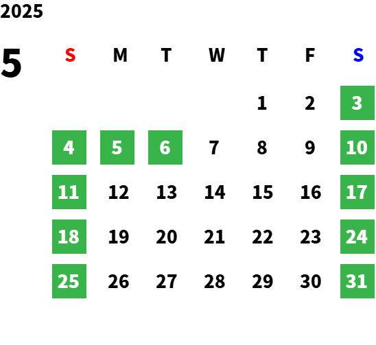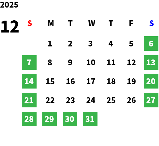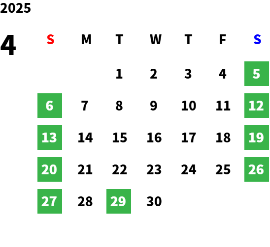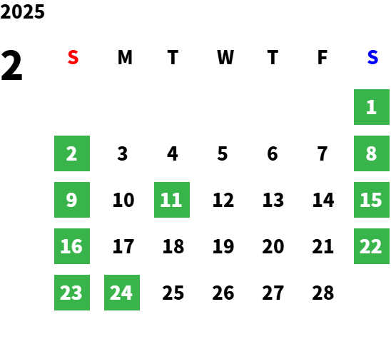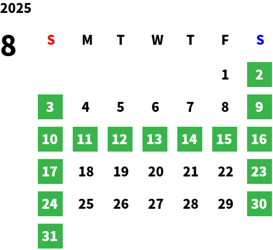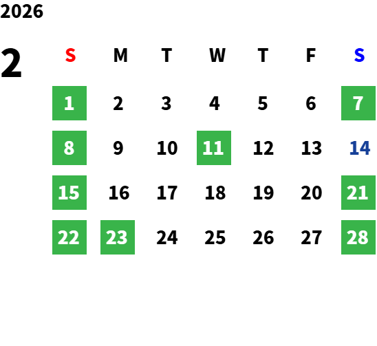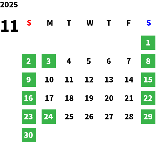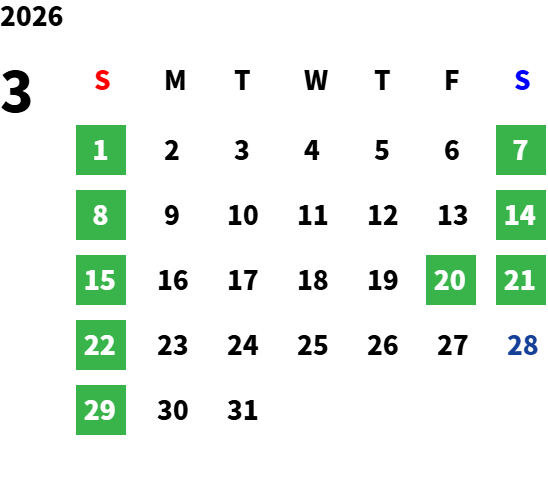 詳しくは下部の営業日カレンダーをご参照下さい。
