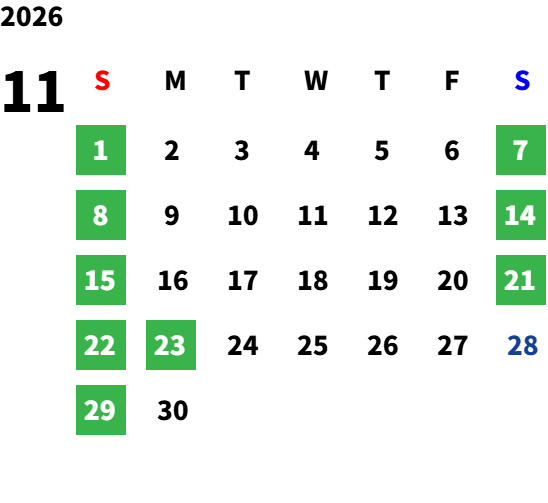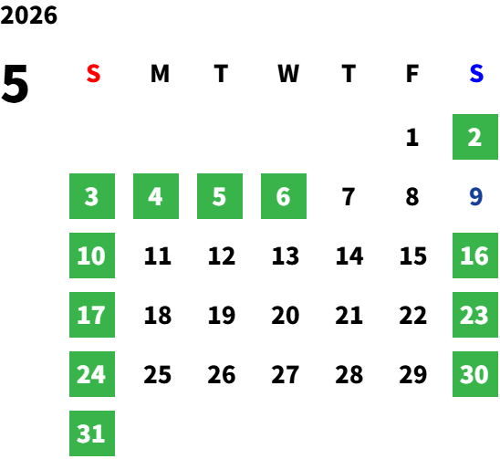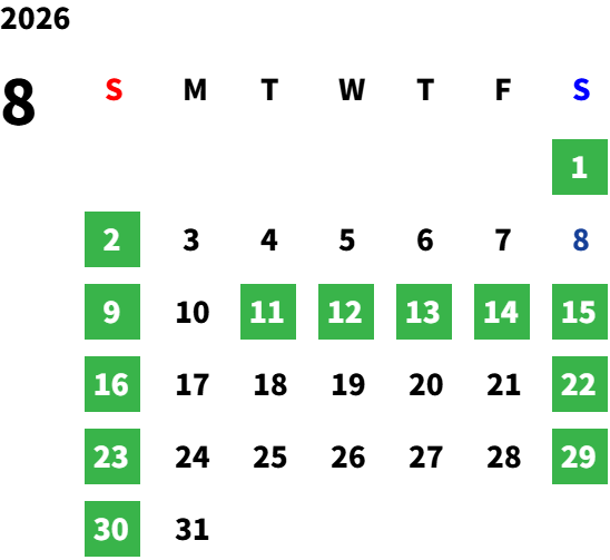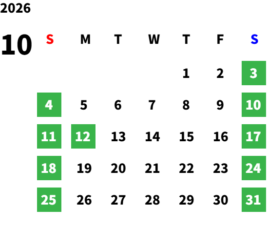 詳しくは下部の営業日カレンダーをご参照下さい。